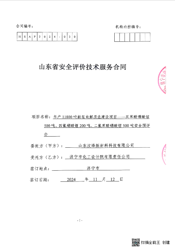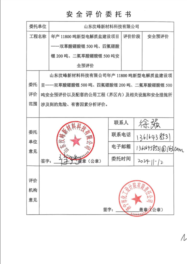 | 山东汶峰新材料科技有限公司年产11800吨新型电解质盐建设项目安全预评价 |